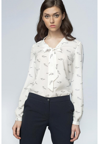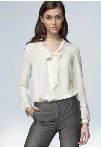 Composez des tenues élégantes et raffinées grâce à cette blouse, proposée en bleu marine ou en blanc. Son encolure en U à nœud Lavallière peut aussi se porter défait. Portez cette blouse aussi bien au bureau que pour sortir dîner et sur sur un caraco pour pour tempérer la transparence du blanc.