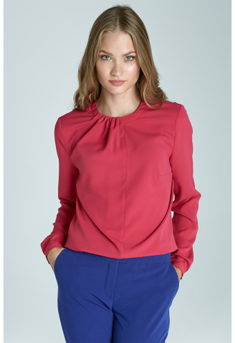 Ce vêtement souligne les formes féminines avec discrétion grâce à sa coupe ajustée aux bons endroits. Le col arrondi se pose sur un décolleté en trompe-l'oeil, et la poitrine est mise en valeur par des pinces. La forme décolletée de cette jolie blouse permet à la femme...