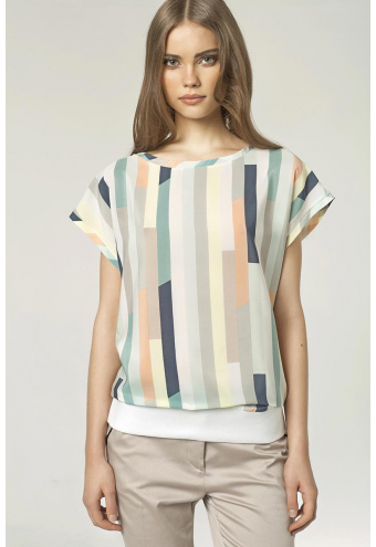 Avec son imprimé à rayures, cette jolie blouse allie des lignes sophistiquées aux couleurs très en vogue de la saison. On apprécie sa coupe ajustée sur la poitrine par un jeu de pinces ainsi que son encolure arrondie soulignées par trois découpes en gouttes d'eau. Nous aimons associer sa coupe légèrement blousante à un pantalon fuselé et des ballerines.