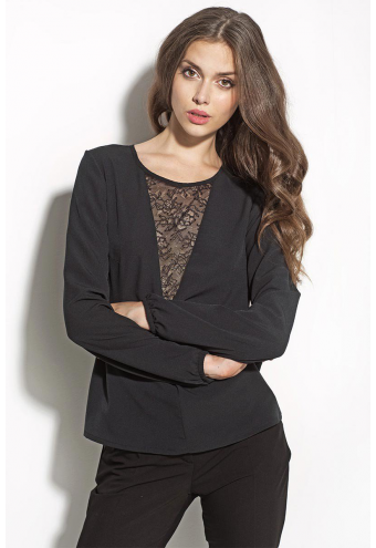 Cette blouse manches courtes est un choix romantique à porter aussi bien en journée qu'en soirée. Confectionné dans un tissu aérien, ce modèle est doté d'un empiècement fantaisie en dentelle noire sur le devant, lui même orné de trois petits boutons ton sur ton. On aime le charme...