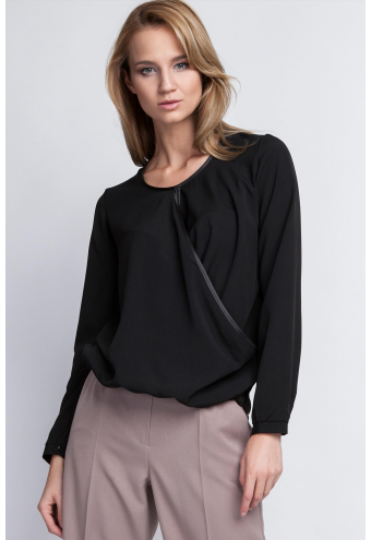 Aussi classe que confortable, cette blouse noire tendance vous promet une allure féminine quelle que soit la tenue que vous composerez : Casual ou plus habillée. On aime sa coupe originale avec ses pans croisés dans un esprit cache-coeur et soulignés d'une ganse en satin ton sur ton. Manches longues avec...