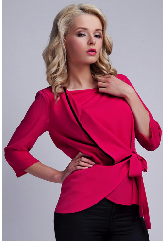 Avec son pan croisé qui s'attache sur la hanche dans un esprit de haut cache-coeur, cette blouse sait faire preuve de finesse. On aime particulièrement sa teinte fuchsia, éclatante, et son liseré contrastant qui parcoure le pan à nouer sur la hanche. Cette ganse noire souligne une coupe...