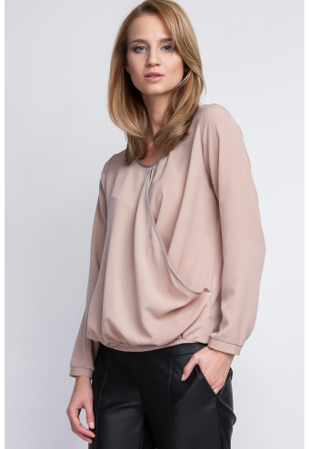 Prenez une longueur d'avance sur la mode avec cette blouse beige, irrésistible. Ses pans croisés parcourus d'une ganse de satin ton sur ton, son esprit cache-coeur et son étoffe douce et soyeuse lui apportent une note féminine très raffinée. On apprécie enfin ses manches longues dotées de pattes...