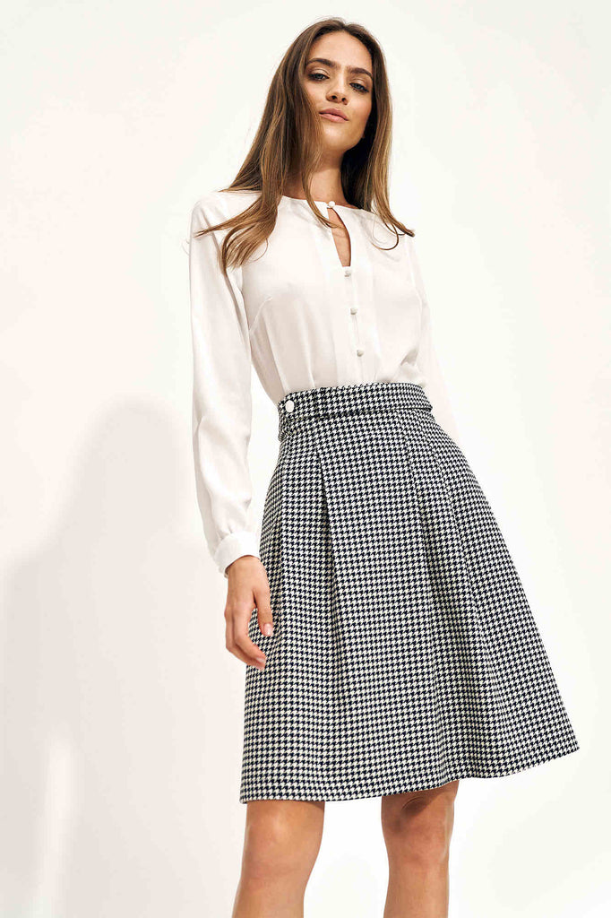Ne cherchez pas plus loin que cette jupe évasée aux motifs pied de poule.