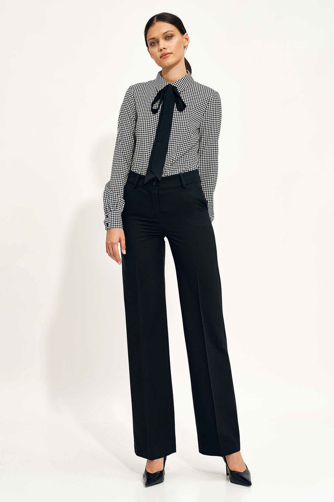 Avec son étoffe fluide, sa lavallière et son motif imprimé à carreaux noirs et blancs, ce chemisier vous offre une allure pointue est un style à la fois moderne et élégant.