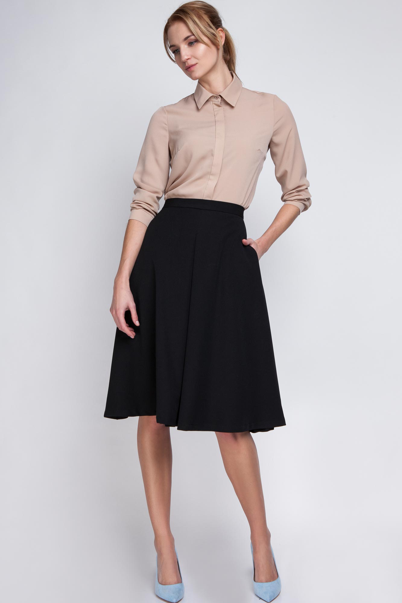 Jupe trapèze, midi - Noire