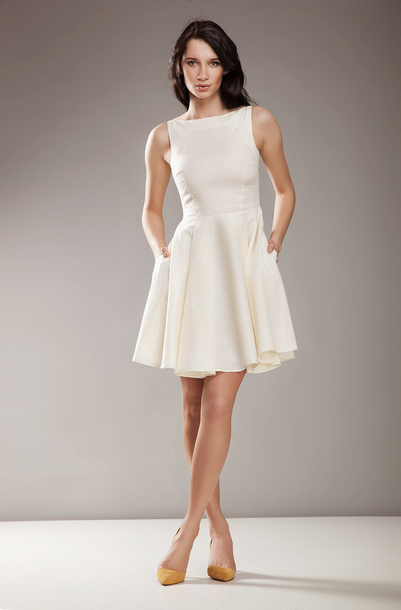 Robe glamour sans manches, avec jupe évasée à plis creux - Écrue