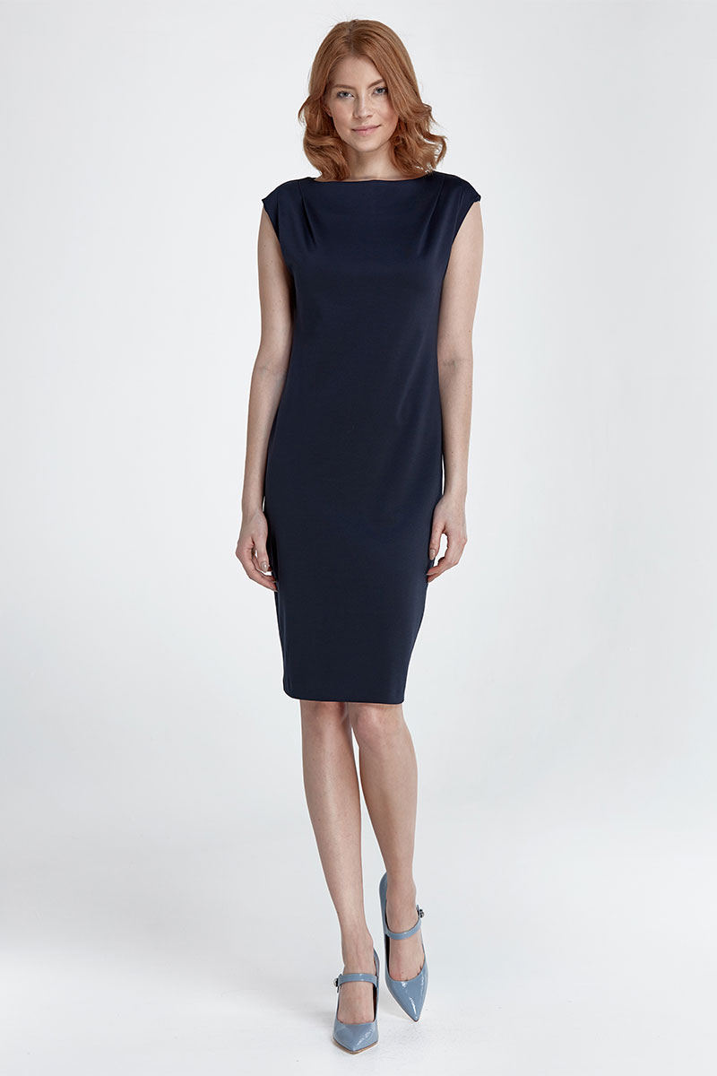 Robe droite, sans manches, avec jeu de plis sur les épaules - - Nuance bleu marine -