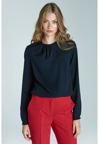Avec son encolure travaillée et sa coupe blousante, cette jolie blouse bleu marine sera incontestablement la star de notre dressing chic, cette saison. On aime sa coupe ajustée par des pinces situées au dos mais également sur la poitrine ainsi que ses manches dotées de pattes indéchirables sous des poignets...