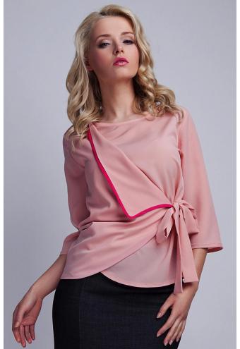 Laissez vous séduire par cette jolie blouse rose poudré, pensée et conçue pour les fashionistas élégantes et exigeantes. Avec sa coupe sensuelle et féminine, ses manches 3/4, son encolure arrondie et son pan à nouer sur le côté dans un esprit de haut cache-coeur, cette blouse...