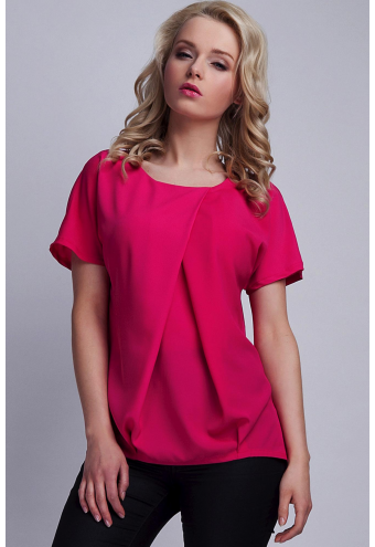 Avec son pan croisé qui s'attache sur la hanche dans un esprit de haut cache-coeur, cette blouse sait faire preuve de finesse. On aime particulièrement sa teinte fuchsia, éclatante, et son liseré contrastant qui parcoure le pan à nouer sur la hanche. Cette ganse noire souligne une coupe...