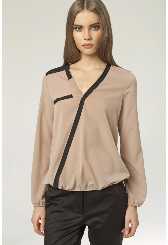 Cette blouse beige constitue un basique tendance et confortable à la fois, pour la ville comme pour le bureau. Doté d'une coupe droite et blousante, ce modèle est réalisé dans un tissu en polyester doux et voluptueux. Son encolure, décolletée en V, est ornée d'un gallon aux finitions...