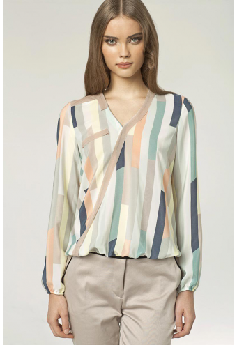 Avec son imprimé à rayures, cette jolie blouse allie des lignes sophistiquées aux couleurs très en vogue de la saison. On apprécie sa coupe ajustée sur la poitrine par un jeu de pinces ainsi que son encolure arrondie soulignées par trois découpes en gouttes d'eau. Nous aimons associer sa coupe légèrement blousante à un pantalon fuselé et des ballerines.